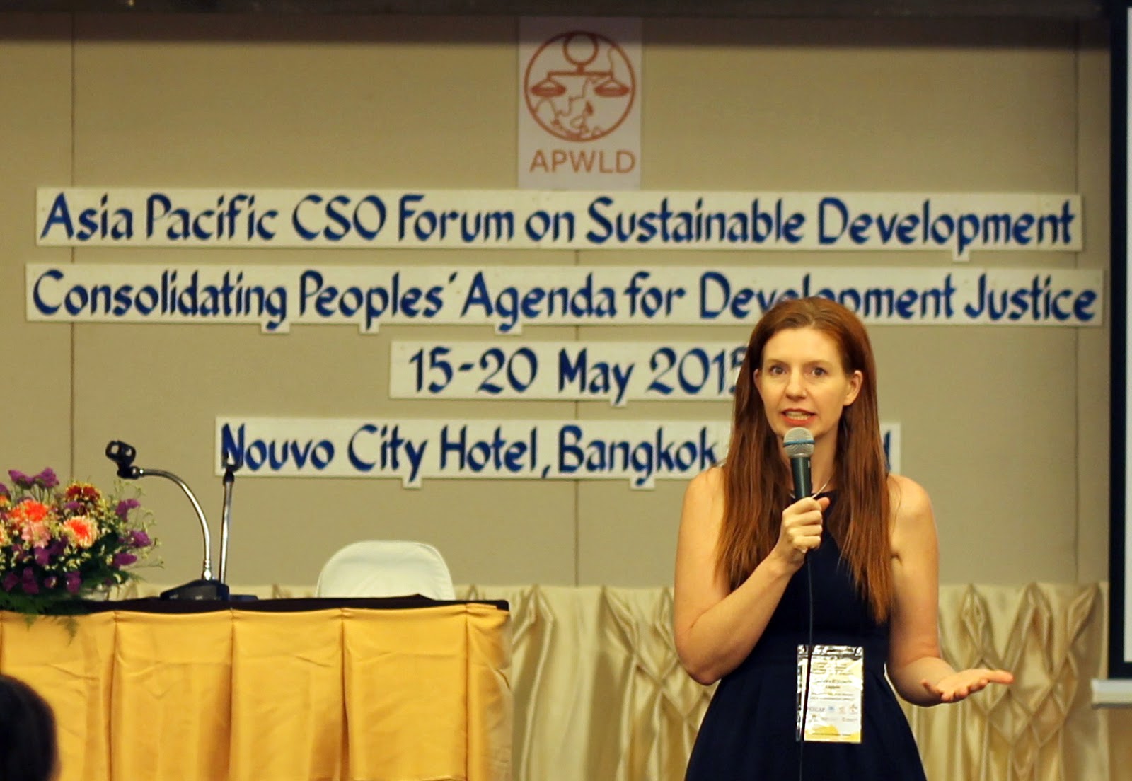 Kate Lappin who leads Asia Pacific Forum on Women, Law and Development (APWLD) made a strong case to mobilize civil society to have a high ask when it comes to accountability and monitoring mechanisms in these processes. She was addressing participants of the Asia Pacific Civil Society Forum on Sustainable Development in Thailand. She shared recommendations for possible roles High Level Political Foum (HLPF) can play in this direction.